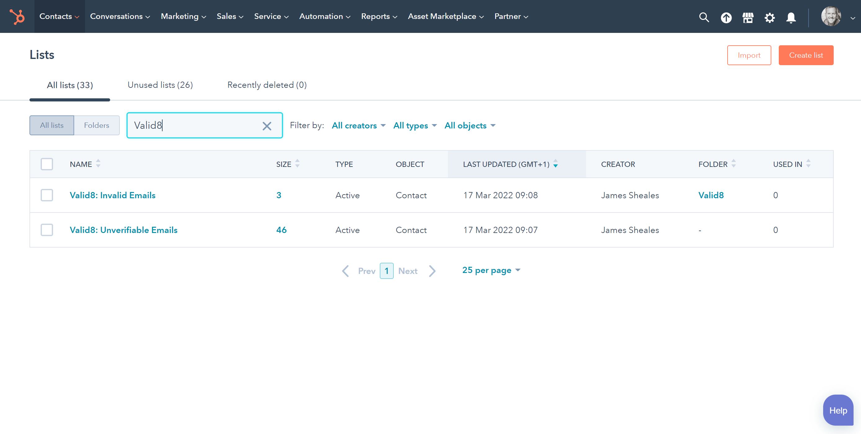 Valid8 is a HubSpot app that plugs straight into your HubSpot portal. It automatically verifies a contact's email address for each new contact added to your HubSpot CRM. Valid8 also adds a card to your HubSpot Contacts screen so you can run email address verifications on demand and adds a new action to workflows allowing you to bake email verification right into your HubSpot workflows.